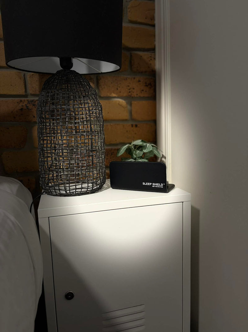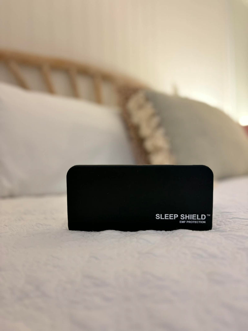 Sleep Shields are thoughtfully designed to help reduce your exposure to electromagnetic field (EMF) radiation during sleep. By positioning your phone behind the Sleep Shield, you create a physical barrier that helps deflect and minimise the intensity of EMF emissions directed toward your body—particularly your head and upper torso.